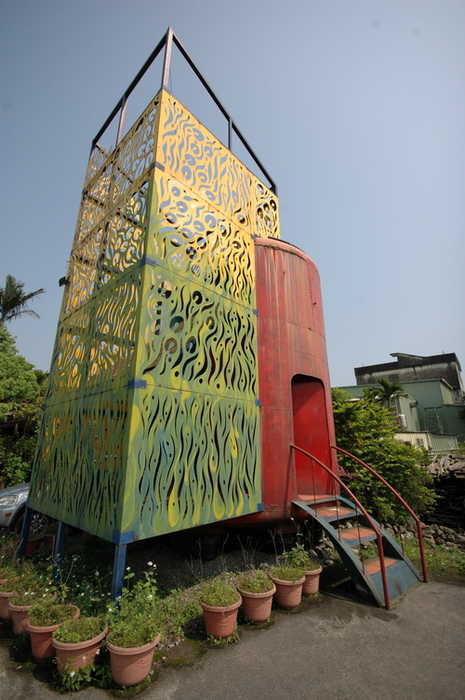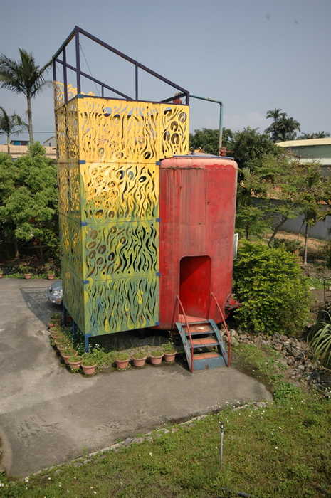 那是由宜蘭酒廠贈送不用的製程tank去改裝成的廁所