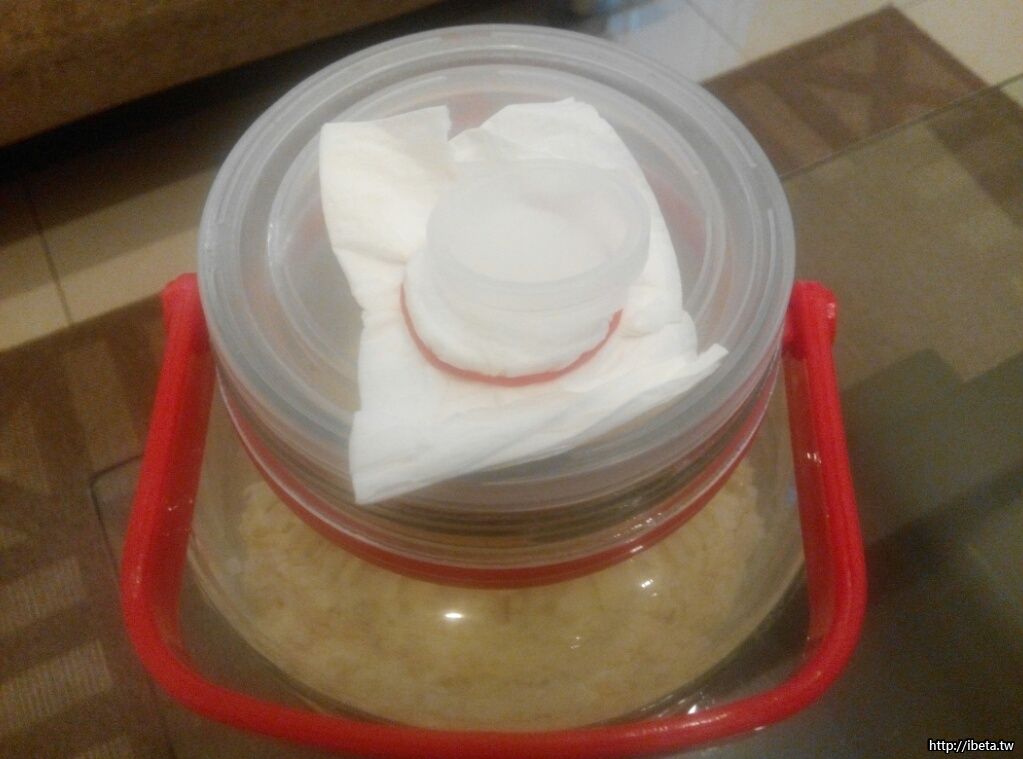 裝罐後且不可氣密,留個透氣空以紗布覆蓋。因為根黴的繁殖與水解澱粉反應是【需氧】的。