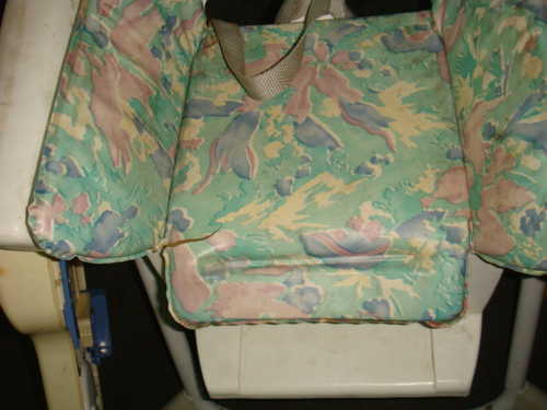 桌面有點黃了,塑膠椅墊有破。但是不影響使用。