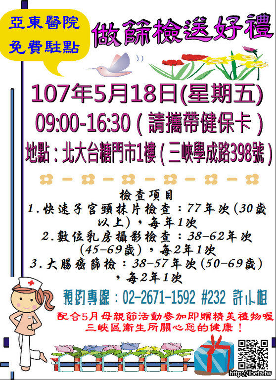 三峽衛生所5/18(五)免費社區健康篩檢-台糖門市