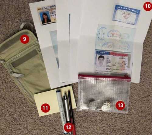 10: 個人證件,建議把手邊的證件全部影印一份放在帆布錢包或者像是13的夾鏈袋中。