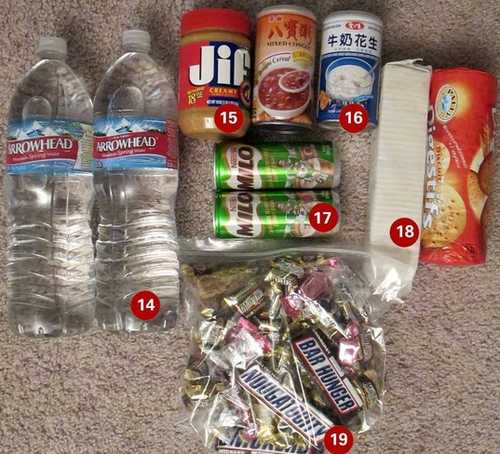 15: 花生醬,從朋友那聽來說正規逃難訓練提醒過,花生醬具有高熱量高脂肪的特點,可靠花生醬撐過不短時間。