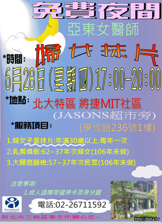 三峽衛生所6/28夜間女醫師健康篩檢-將捷MIT社區