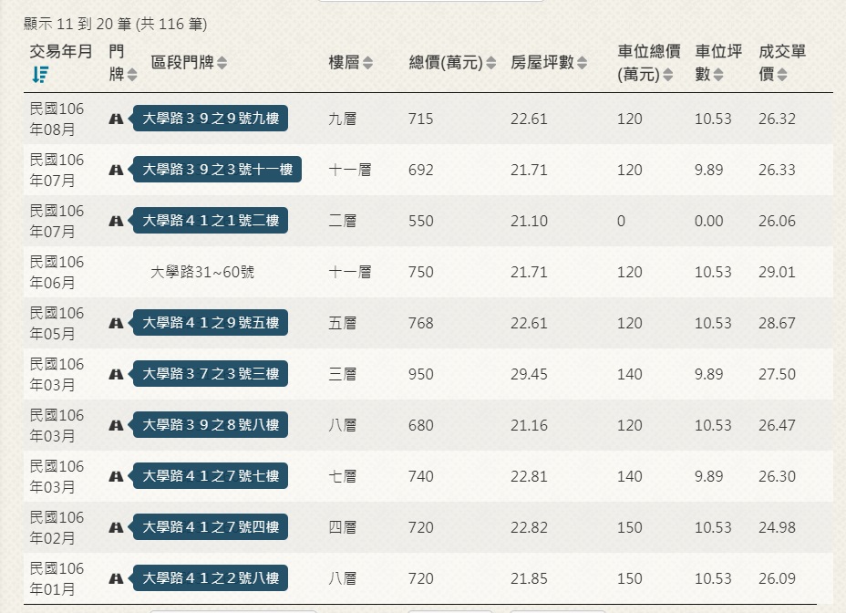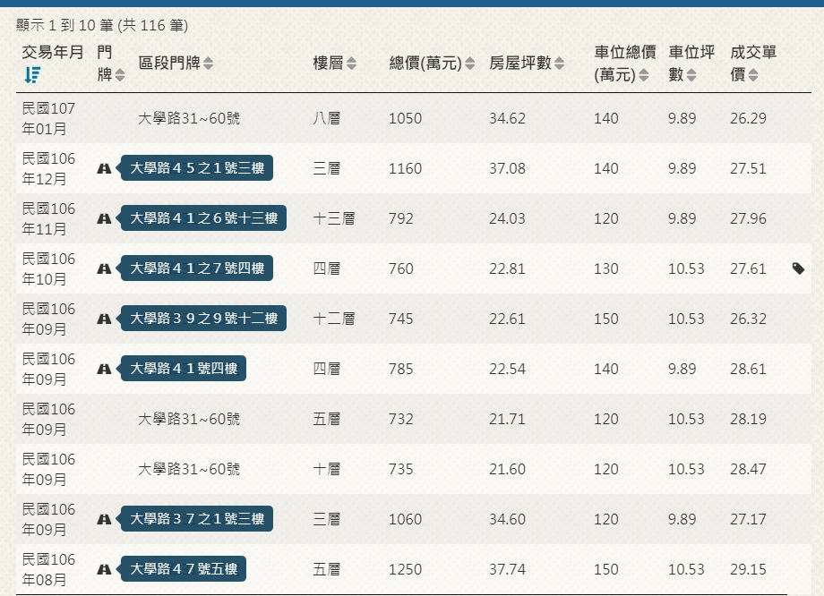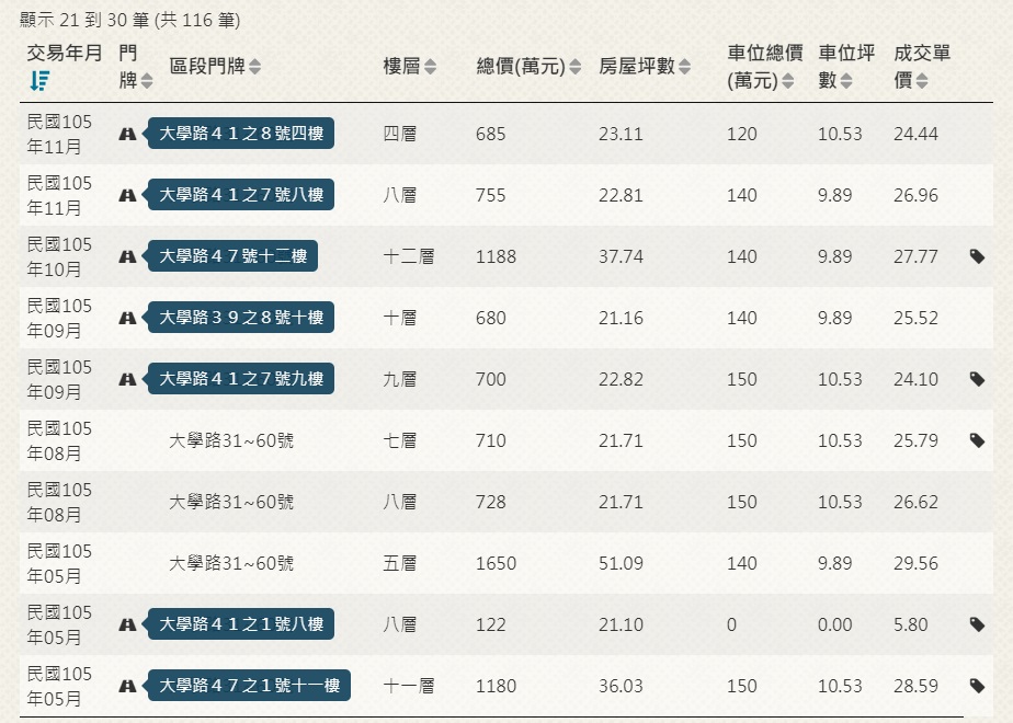 有不少物件有兩次移轉資料,有人2015年才接手,2016年出售,成交行情也略高於取得成本,顯示並未虧本出場。
