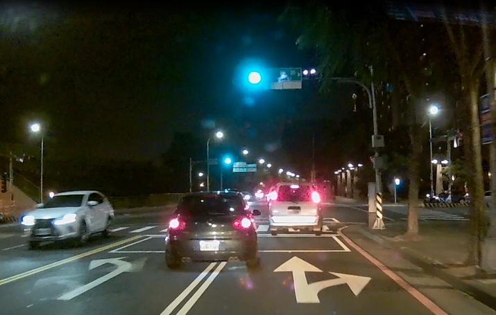 但事實上,會在該路段左轉的車輛並不多(也沒有設置左轉專用號誌,就圓形綠燈一起通行),