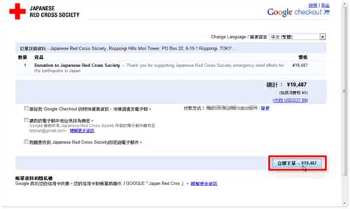 每筆捐款至少100日元以上,輸入完畢再按「Donate」繼續下一步。如果你有Google帳戶並曾經註冊過Google Checkout(Google的線上付款服務)的話,可以登入後再按捐款。