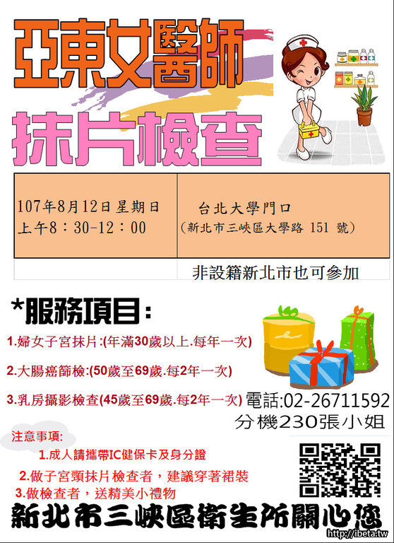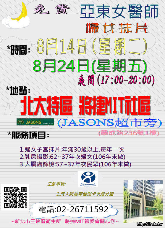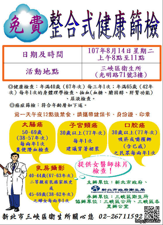 三峽衛生所8月份免費社區健康篩檢場次