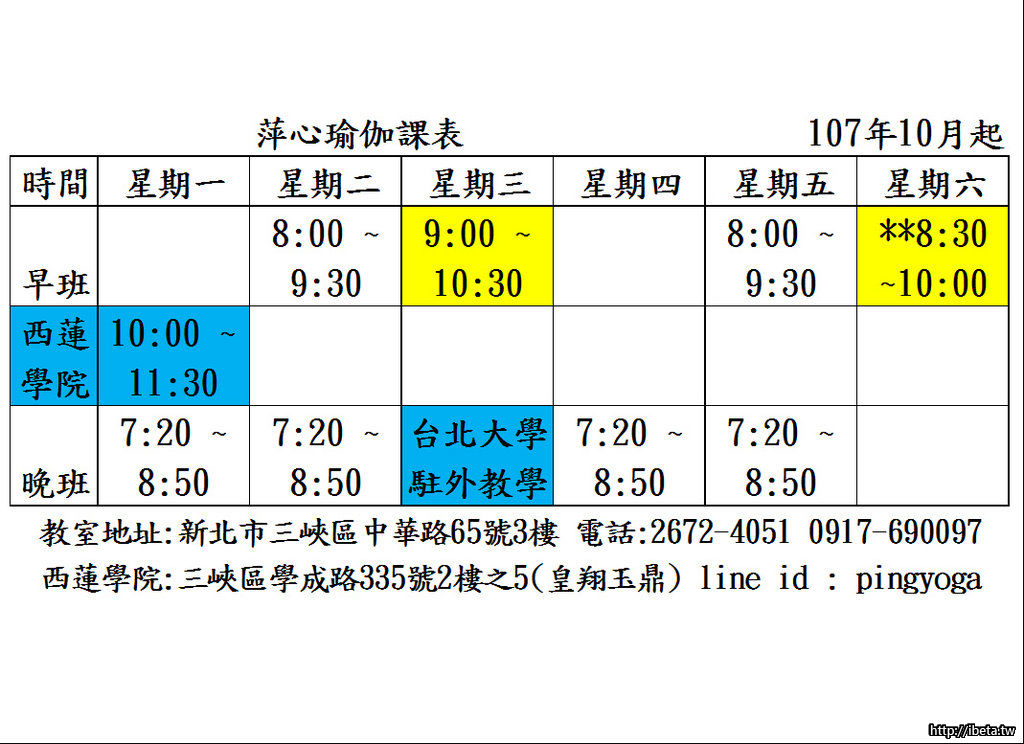 三峽萍心瑜伽教室招生中10/1開課~