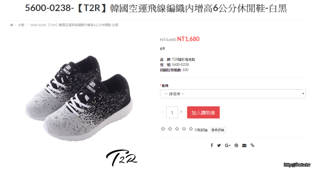 【T2R】韓國空運飛線編織內增高6公分休閒鞋-白黑