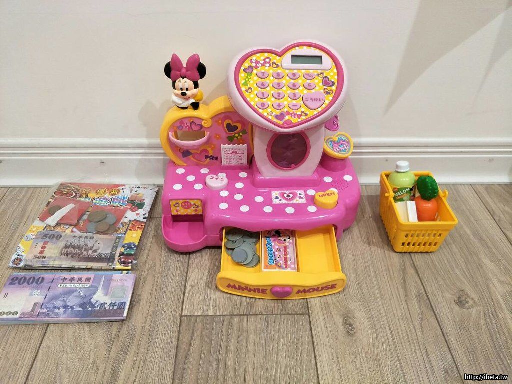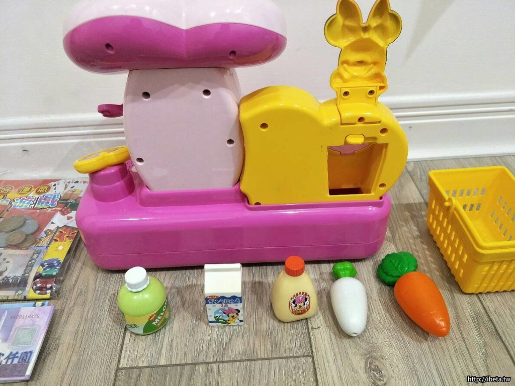1.米妮正版電子收銀機:任何玩具配備皆可刷條碼顯示價錢,有聲音, 售價200元(已售出)