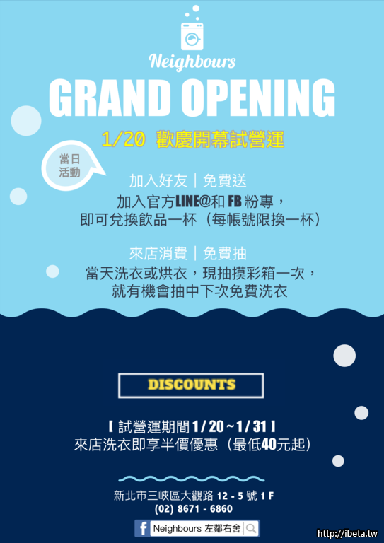 而且試營運期間 1/20 ~ 1/31洗衣通通半價