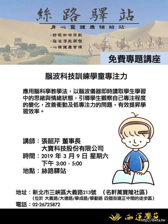 絲路驛站-腦波科技訓練學童專注力(免費專題講座)