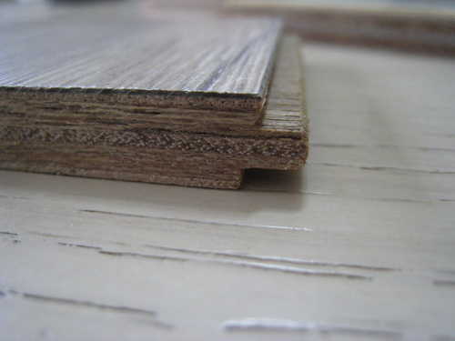 解說二:台灣島型地板其表面實木皮厚度約莫在60條~200條之間