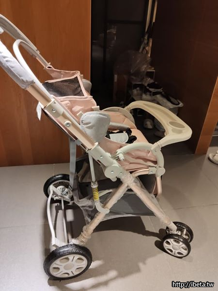 近全新玫瑰金粉色可收折,可平躺,可雙向推,嬰兒推車