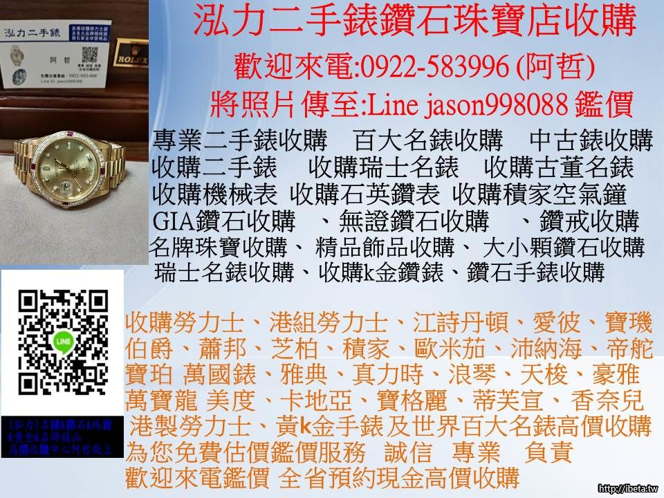 全省高價收購專線:0922-583996 阿哲 泓力二手錶鑽石珠寶收購