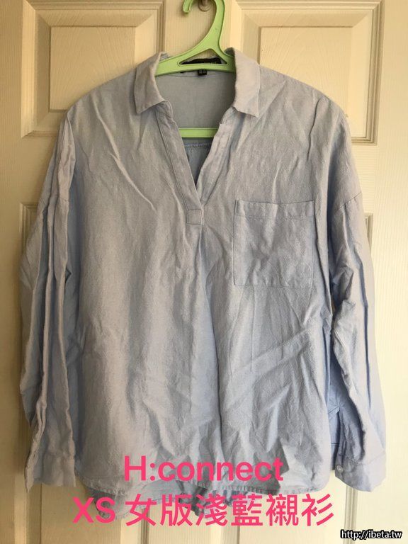 7) 50元 - 穿過兩次 - H:Connect - 女 - XS號 - 淺藍棉麻長袖襯衫