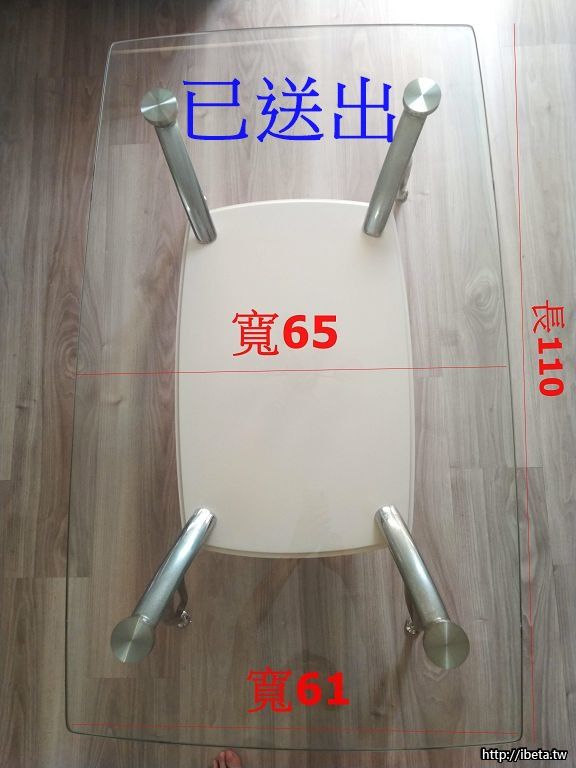 1. 透明茶几,購自宜得利,已使用10年(今年第11年),尺寸請看圖片,4支鐵桌腳皆有少許~多的鏽斑,圖片是最嚴重的。請自備車子,我可以協助搬至車上。