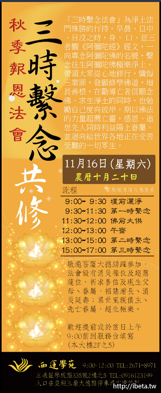 秋季報恩法會-11/16星期六.歡迎十方大德共襄盛舉!