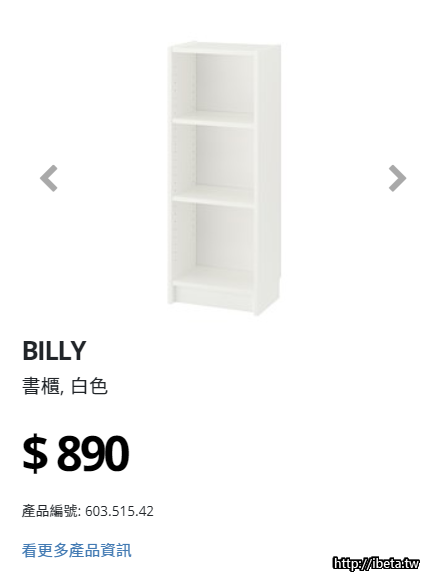 IKEA BILLY白色三層書櫃