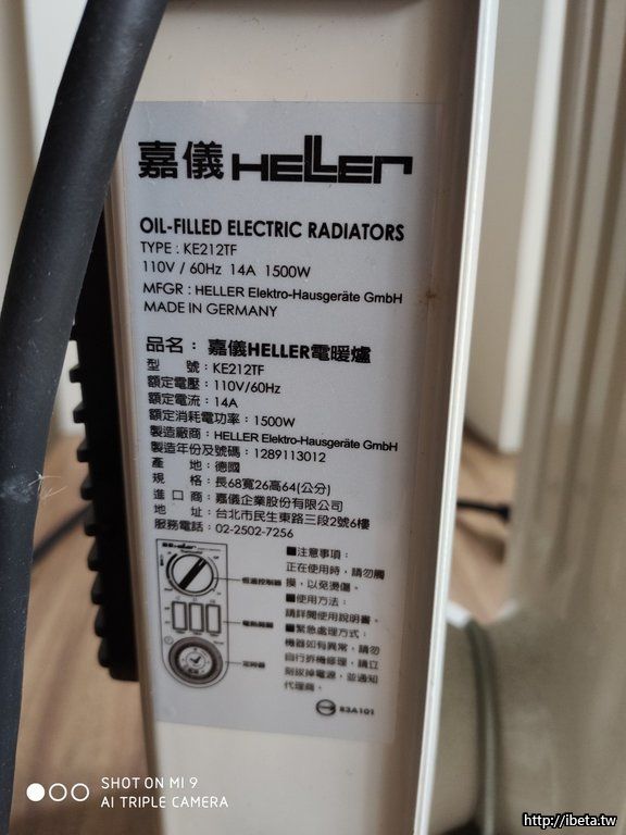 出售二手德國嘉儀 KE212TF 葉片電暖爐