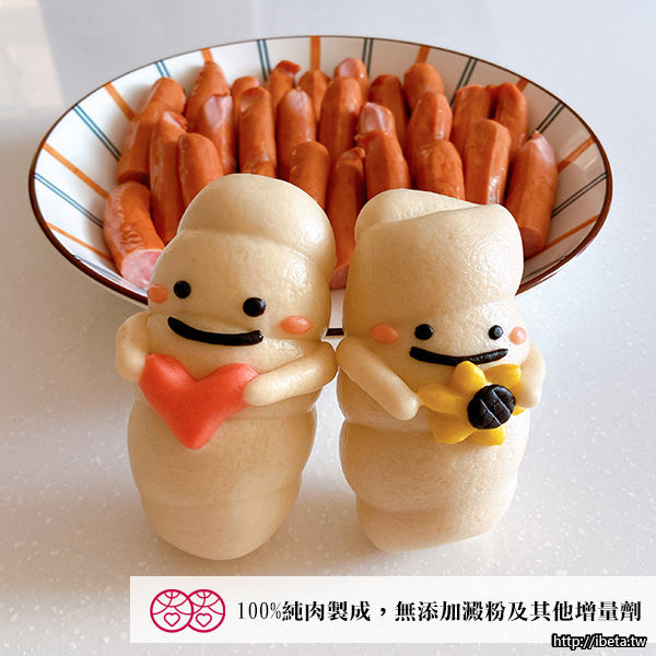 ●內餡:台畜德式香腸(原味/半根)100%純肉製成,無添加澱粉及其他增量劑。