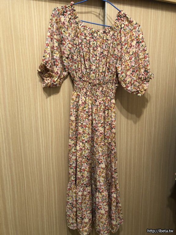2. 粉色碎花洋裝 領口有彈性可拉成一字領 雪紡材質沒內裡但不會透
