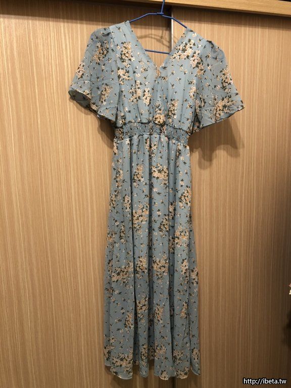 1. 藍色碎花洋裝 前後V領 後V可以綁帶 雪紡材質有內裡