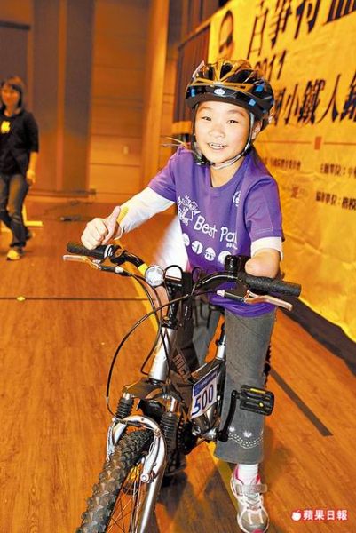 郭翔芸念新北市桃子腳國小3年級,因好動被鄰居發掘參賽,因父母都上夜班,去年初次參賽是阿嬤帶她去比賽現場,當郭爸下班趕到,她已準備上場。郭媽莊聖苹說:「她爸看到女兒自己完成所有比賽,感動到寫日記,我從認識他到現在,他就只寫過這一篇。」小鐵人賽國小組全程3項,依序是游泳200公尺、自由車5公里、路跑1.25公里,翔芸說:「我最喜歡騎車,游泳最累,因為我手臂游不快。」她參加鐵人比賽,最困擾的是換裝備,去年都是請其他小選手幫她戴車帽,但也交到不少新朋友。