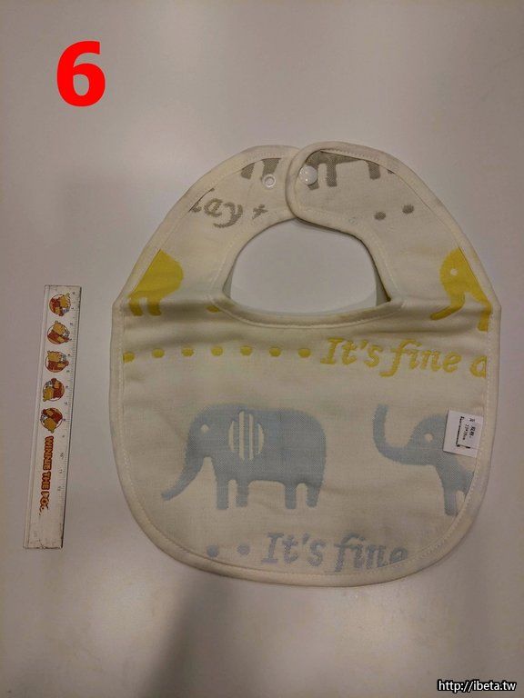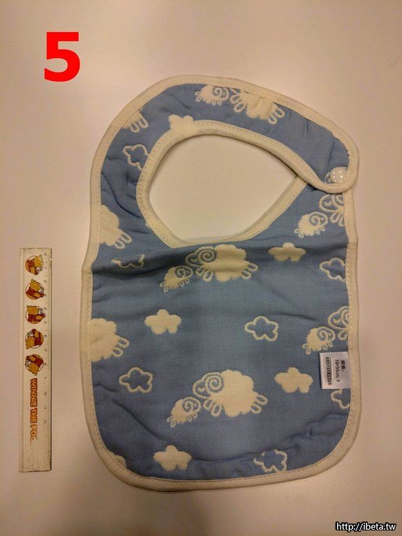 3.4.5.6. 口水巾,未使用,旁邊有15cm 直尺,