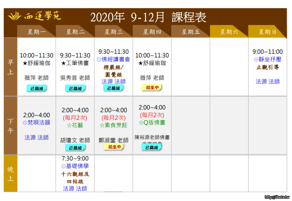 日期:109年9月15,29、10月13,27、11月10,24、12月8,22