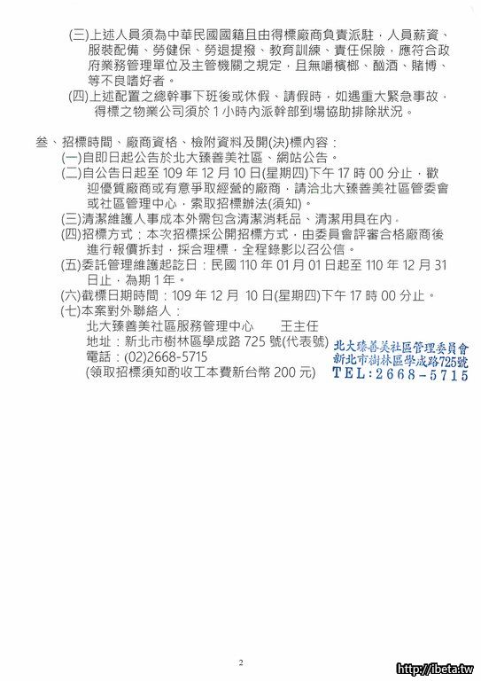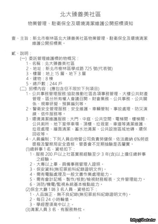 北大臻善美社區物業管理暨保全招標事宜