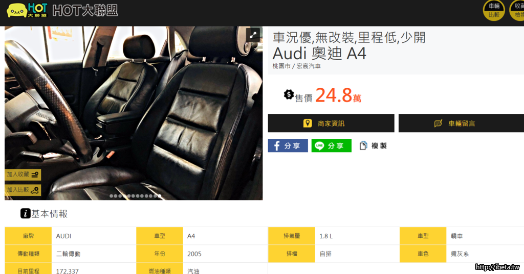 1. 自售給需代步車的朋友,價格便宜! 也很適合初學者喔! 奧迪A4大小剛好,歐洲車體安全,價格低廉被刮不怕喔!