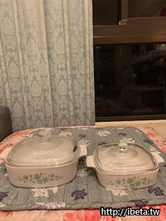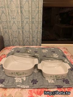 九成新康寧花卉方型鍋-1L+2L 只用過一次裝熱湯而已 底部乾淨 沒上過爐火 沒進過烤箱