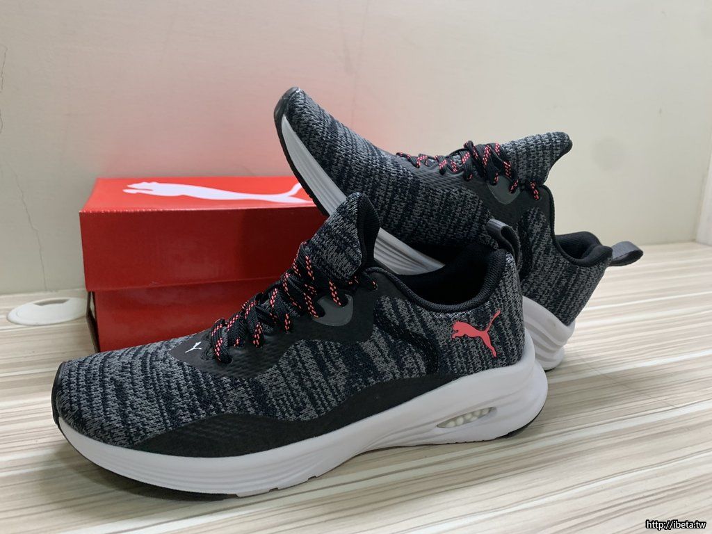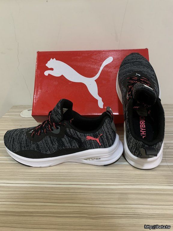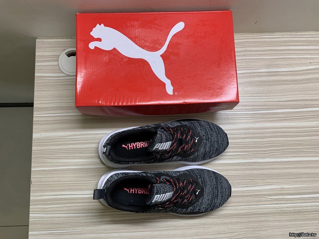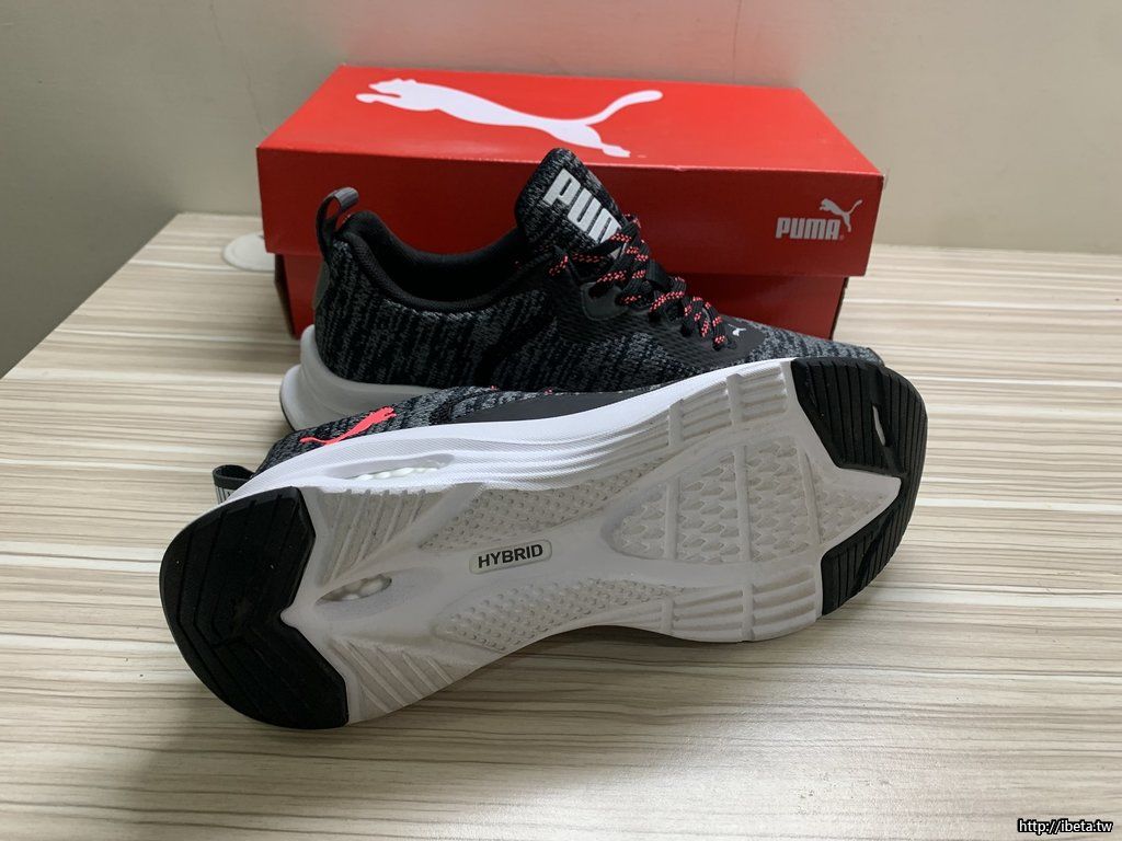 PUMA 慢跑鞋 HYBIRD FUEGO KNIT 黑灰 網布 橘LOGO 女