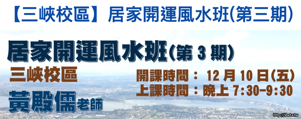 臺北大學「居家開運風水第三期」即將於12月10開課,誠摯邀請大家來上課