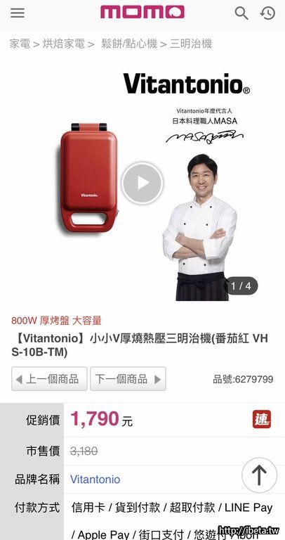 (已售出)Vitantonio超夯厚燒熱壓三明治機,全新出清售1100元