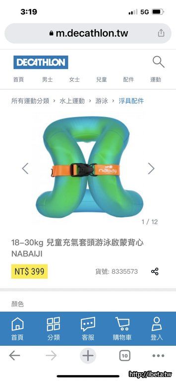 賣二手迪卡儂兒童充氣背心式泳圈,很新,很好用,適合18-30公斤的小朋友。