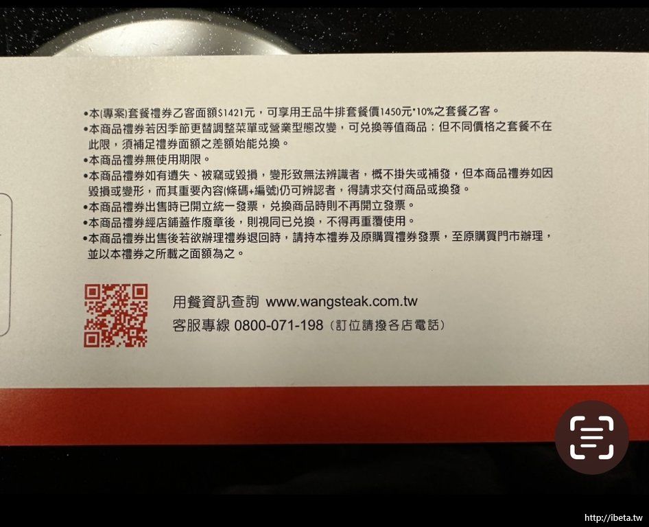 取消~王品牛排禮卷 *4(1350元/張)+ 西堤牛排禮卷 *1(58...