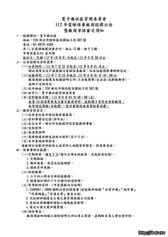 112年夏卡爾社區電梯保養廠商招標公告.pdf