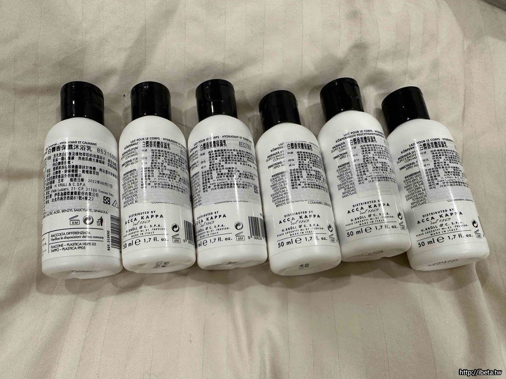 -acca kappa滿額贈品,乳液製造日期有2021/07/22及1/29,沐浴乳2022/06/21