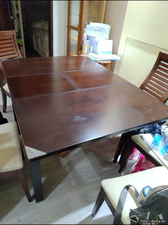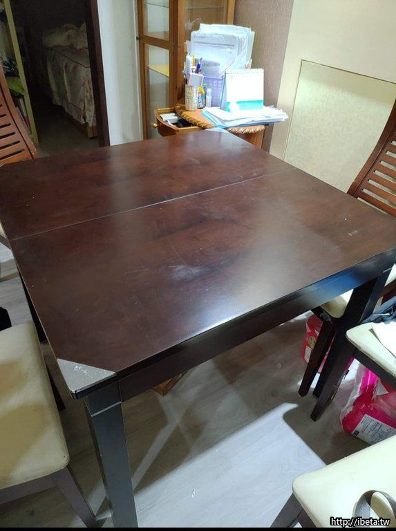 高75公分,桌面寬90×90公分,攤開後126公分。