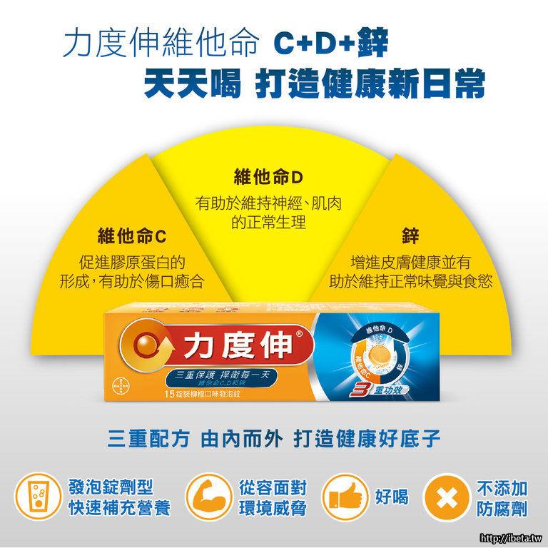 力度伸維他命C+D+鋅發泡錠(30錠/盒) 柳橙口味
