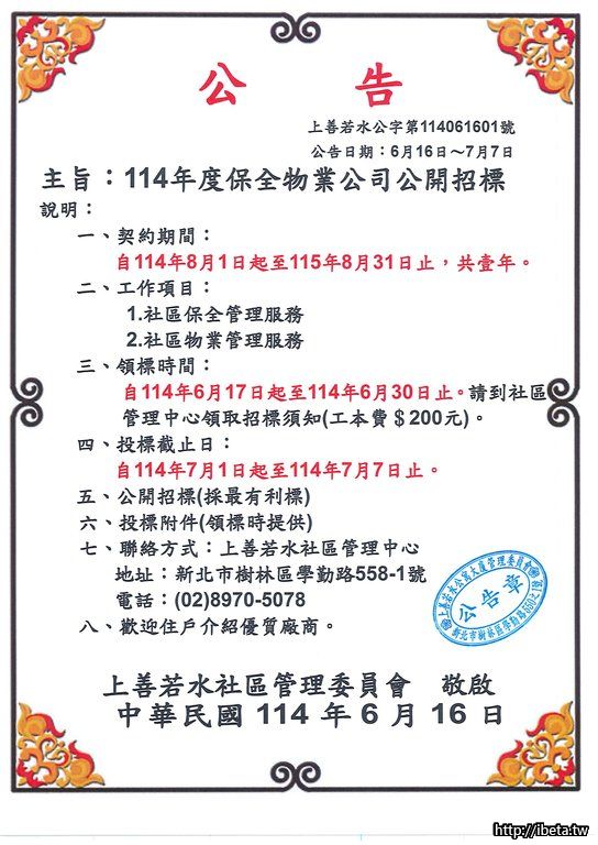 上善若水114年度保全暨物業招標公告
