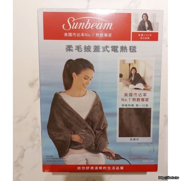 [p=25, null, left]美國 Sunbeam 柔毛披蓋式電熱毯/熱敷墊(氣質灰)[/p]