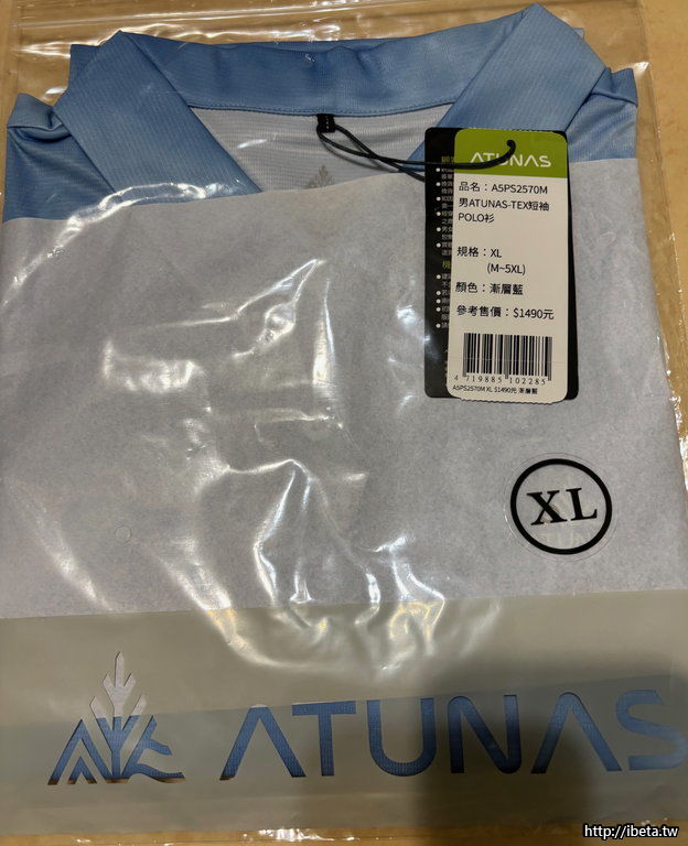 歐都納ATUNAS-TEX男排汗透氣短袖POLO衫,顏色:漸層藍,尺寸XL,全新未拆。