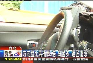 計程車司機:「我知道方向盤很髒嘛,但是我不知道它會比馬桶坐墊還髒。」記者:「你聽到之後覺得?」計程車司機:「蠻誇張的。」
