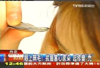照片眼睛上方又紅又腫,近看,眉毛長出一點一點的小紅疹,這是一位20多歲上班族女性,半年前因為自行拔眉,造成毛囊細菌感染、長疹子,甚至動用抗生素治療,嚴重恐怕會長不出眉毛,而一切拔眉「器具」惹得禍。皮膚科醫師趙昭明:「拔眉毛過程中,第一個可能是器械沒有消毒乾淨,第二個拔完之後也沒有去清潔,造成(毛囊)反覆性的一個感染現象。」
