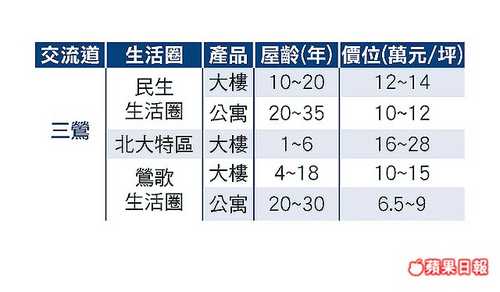 三鶯交流道是國道三號在新北市的最後1個交流道,往東通往三峽區,往西北側通往鶯歌區,以上2區因開車至北市需30~40分鐘,且須經過收費站,過去購屋族接受度不高,但隨著台北市區房價高漲與北大特區發展,已有愈來愈多台北市民「移民」入住,鶯歌生活圈3房公寓總價僅200萬元起,而北大特區3房大樓(含車位)約450萬元起跳。