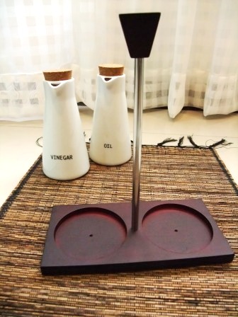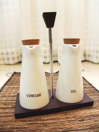 放油與醋的瓷罐加上木頭底座