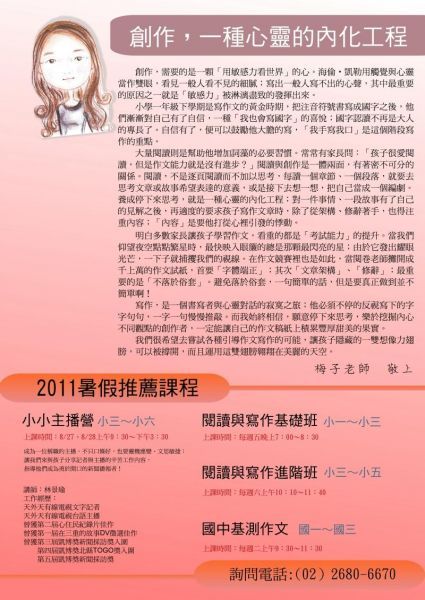 費用:含教材、衣服、保險、照片等,共新台幣1000元整